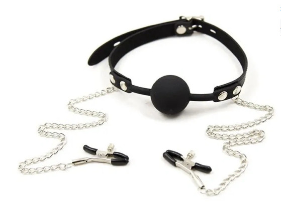 Guilty toys szájpecek + bimbócsipesz-lánccal /fekete/ Szájpecek átmérő: 4 cm Bimbócsipesz lánc hossza: 30 cm |